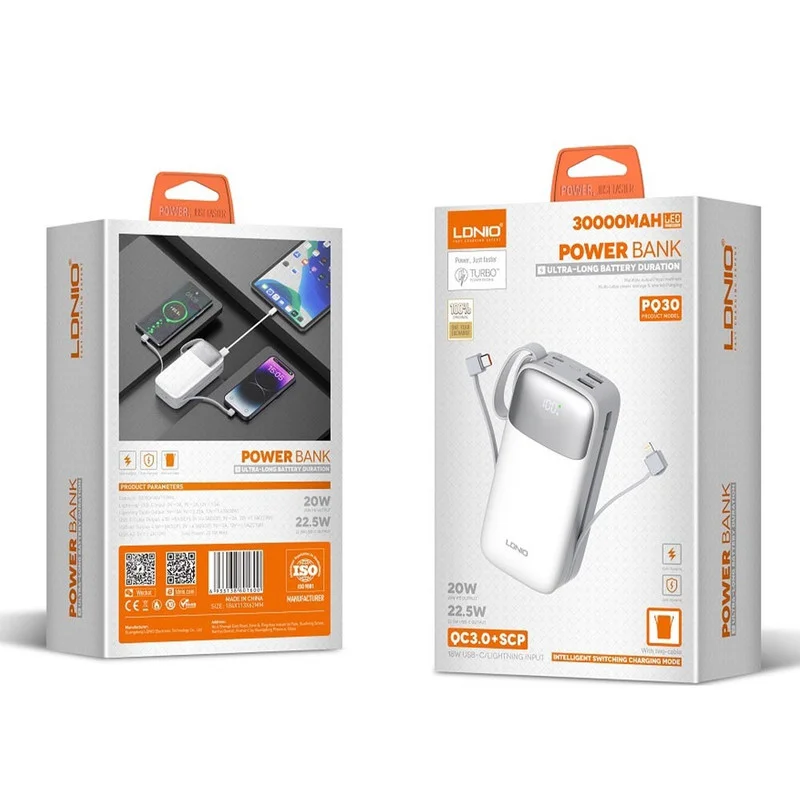 دارای کابلهای متصل با جایگاه مخفی امکان توان خروجی 20 وات از خروجی PD و 22.5 وات از درگاه تایپ سی پشتیبانی از فناوری شارژ سریع QC3.0 و شارژ فوق العاده SCP نمایشگر میزان شارژ به درصد